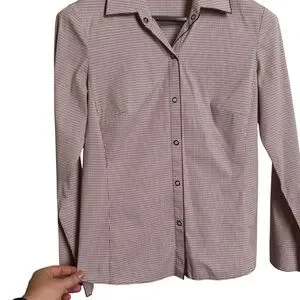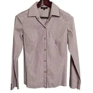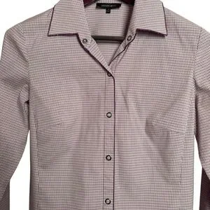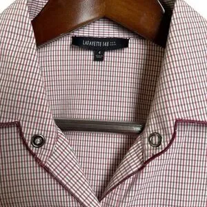 Lafayette 148 Size 4 Gingham Snap Collared Shirt Blouse Career Work Office