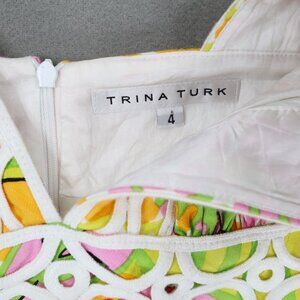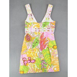 Trina Turk Secret Shift Dress Size 4 Floral Multi Color Print Flowers Lace