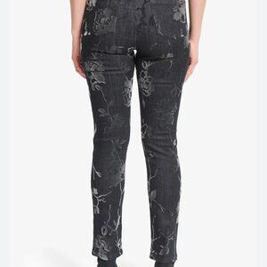 Joseph Ribkoff Quiet Luxury Tonal Floral Textured Charcoal Gray Jeans 4