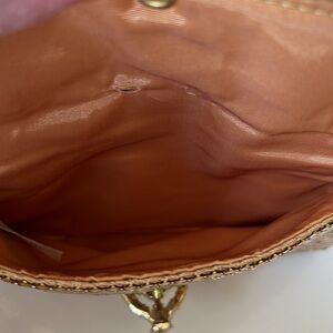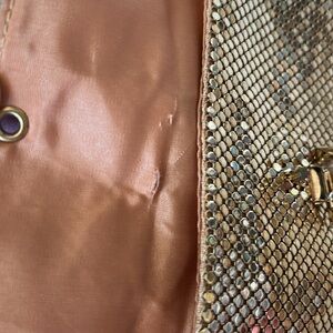 Whiting & Davis Small gold evening bag clutch or small bag. In good vintage condition. Slight rip in interior where flap folds over.