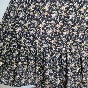 Lined lower half, side pockets, single button top neckline closure, elastic waistline.