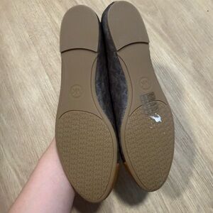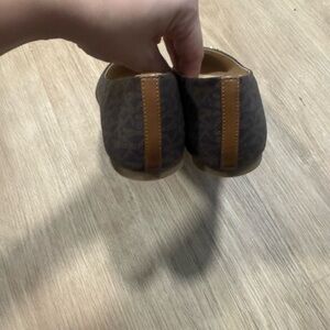 Chic loafers with a dark brown body and tan toe. Gold-tone logo detail adds elegance. Perfect for versatile styling.