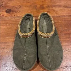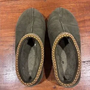 UGG Tasman Slippers Burnt Olive Suede Slippers with Tan Trim Size 6