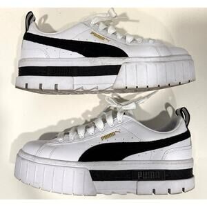 PUMA Mayze Leather Platform White Sneakers Retro Streetwear Size W7.5