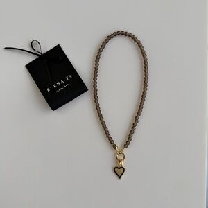 Elegant necklace featuring a gold heart pendant and Smoke Quartz beads. Perfect for adding a touch of sophistication to any outfit.