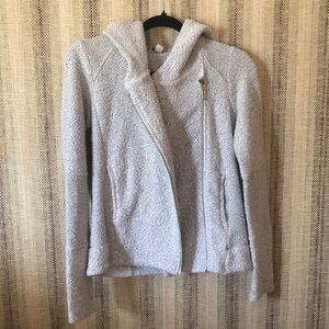 LUCKY BRAND jacket, small size, gray with gold zipper. Great condition, sweater material, very cozy!