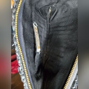 The softly structured silhouette and intricate beading give it a timeless, collectible feel, while the compact size is ideal for carrying essentials. Finished with a zip-top closure and fabric interior lining.