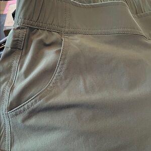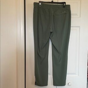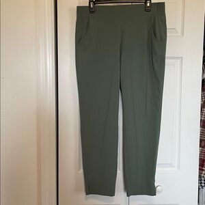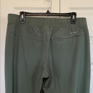 NWOT Eddie Bauer Women's M Green Traveler ankle pant 14% spandex front pockets rear zip pocket. 34” elastic waist 28” inseam 6.5” leg opening