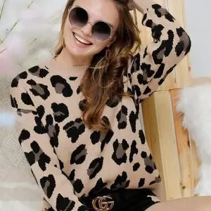 This soft, round neck Leopard Printed Knit Sweater will be one of your favorites. This sweater's softness combined with comfortable fit and style keep fans coming back to this sweater for casual weekends and evenings. Fun and super good looking with jeans and a pair of boots.