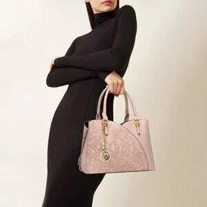 Women’s Pink Triple Compartment Satchel Fashion Top Handle Shoulder Bag