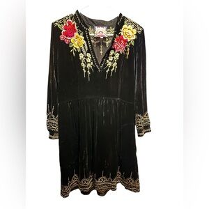 Johnny Was Embroidered Black Velvet Dress size S