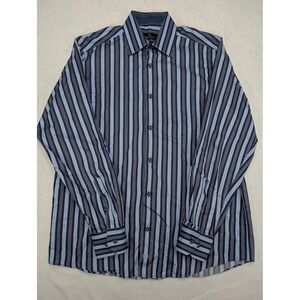 BUGATCHI UOMO Mens Striped Long Sleeve Dress Shirt Size Medium Blue