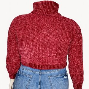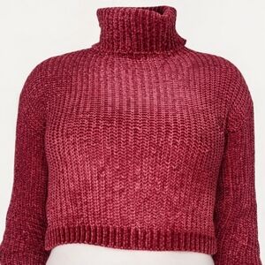 Zenana Cabernet Chenille Crop Turtleneck Sweater Valentine Cozy NWOT Large