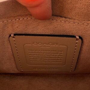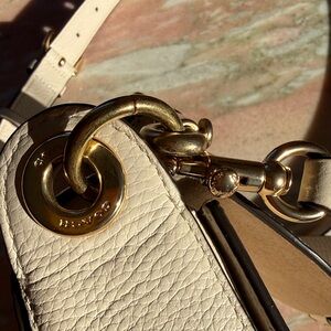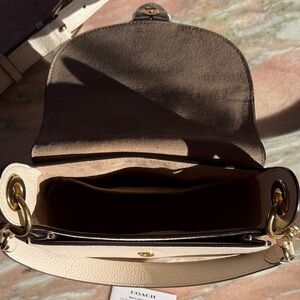Chic Coach crossbody in off-white leather. Features a stylish buckle and adjustable strap and a shoulder strap.