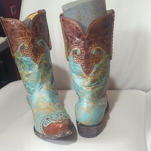 Never worn. Short shaft. Step out in style with these stunning brown and blue western boots. Perfect for adding a touch of flair to any outfit.