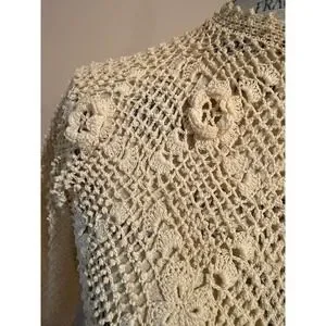 Women's Vintage 70's Crochet Coquette Top With Floral Appliques Size M