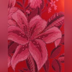 This dress features a captivating red backdrop adorned with oversized pink floral patterns, creating an irresistible visual delight. The square neckline and slim straps enhance its playful silhouette, while the responsible materials add an extra layer of harmony to your wardrobe. Embrace the spirit of summer with every graceful move you make. LENZINGT™ ECOVERO™: the eco-responsible fibers generate up to 50% lower emissions and water impact compared to generic viscose.