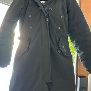 Fantastic black down coat with real fur trim. Ideal for winter warmth. TEI 3 rated to -4F. In great condition. Some slight fading at edges and otherwise almost no signs of wear. This is a great deal if you’re looking for a Canada goose parka that will keep you warm for a reasonable price.