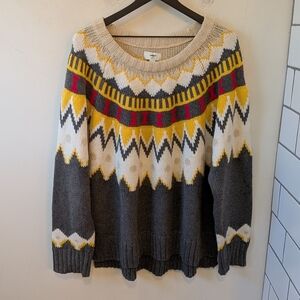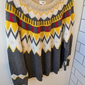 Aerie Women's Fair Isle Cotton Crewneck Sweater XXL Yellow Grey