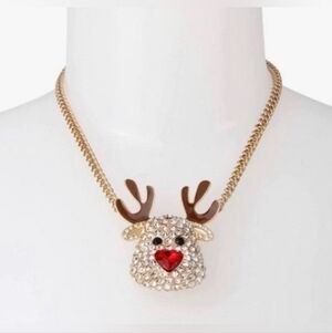 💛🔹️Betsey Johnson 🔹️ Gold Crystal Reindeer Pendant Necklace