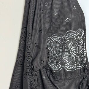Stylish black overlay with delicate lace accents. Ideal for covering a swimsuit.