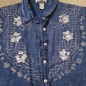 Blue Denim Shirt with White Embroidery