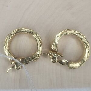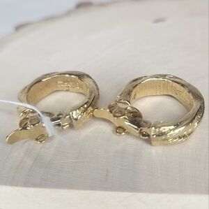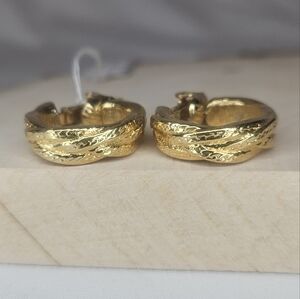 Vintage 1980s Trifari Gold Tone Textured Braided Clip-On Hoop Earrings EUC 3/4"