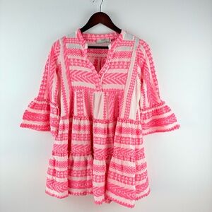 The Devotion Twins Anthropologie Ella Pink Embroidered Boho Tunic Dress XS P EUC