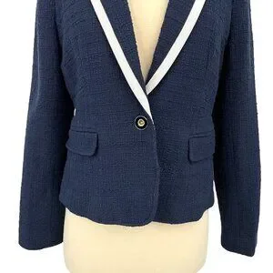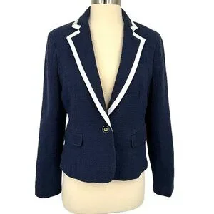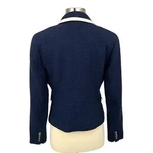 NWT J Crew Textured Tweed Navy Blue Preppy Classic Peplum Blazer Jacket Size 4