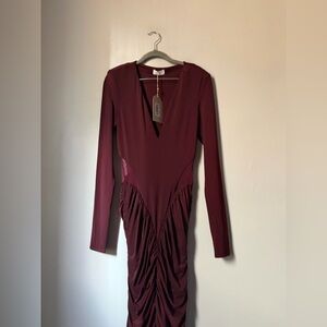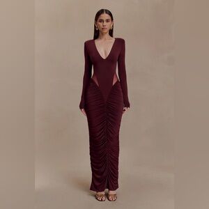 MESHKI Louanne Slinky Long Sleeve Maxi Dress - Burgundy size M NEW