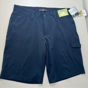Stylish and comfortable cargo shorts featuring a knit waist band. Polyester-spandex blend fabric keeps you cool, comfortable and moves with you. Ideal for dressy or casual outings. Navy Blue Size 12M. NWT