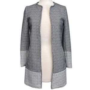 H&M Womens Textured Weave Long Sleeve Lined longline blazer Jacket Black/ivory Pattern