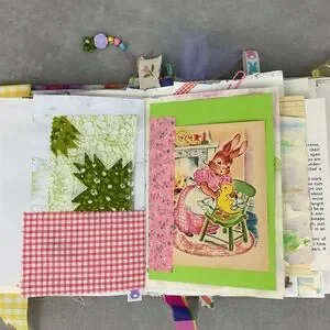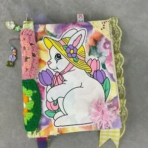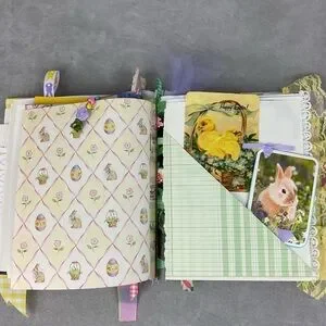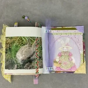 Handmade bunny Easter junk journal (semi bare style) with lots vintage ephemera