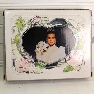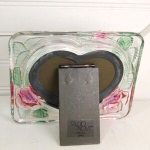 Vintage Studio Nova 4x6 picture frame. Heavy, etched, painted, heart shaped frame in original box. New in box. Measures about 6x5x1 inch and weighs about 1 lb. Perfect for gifting.