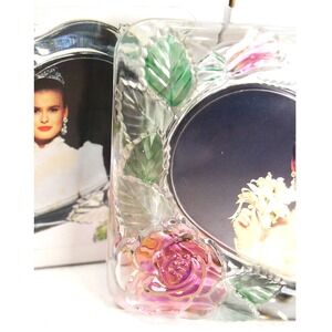 Vintage Glass Picture frame Studio Nova Etched painted roses 4x6 Home Decor