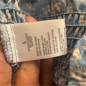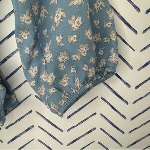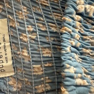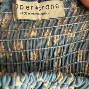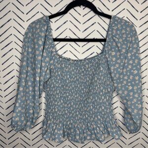 Paper Crane square neckline cottage floral ruched blouse blue white size small