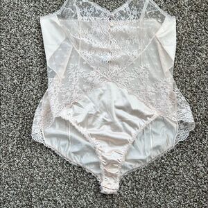 Vintage Vanity Fair Sexy Lace Cream Teddy Romper Bodysuit Nightie Lingerie 36