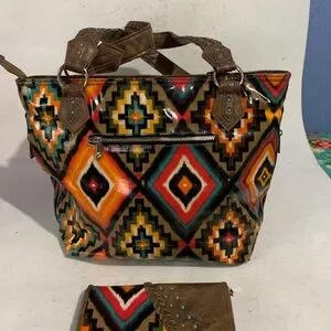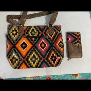 Catchfly Aztec Southwestern Print Satchel and Matching Zip Around Wallet