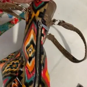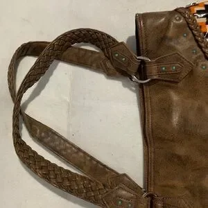 Catchfly Aztec Southwestern Print satchel. Tiny turquoise stones all around. Leather tassels. Wide heavy duty straps. Large zipper compartment with multiple pockets. Excellent condition. Matching zip around wallet included. Bag is 15 x 12 x 5. Wallet 8 x 4.