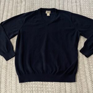 Classic V-neck sweater by L.L. Bean. Rich blue color. Ideal for layering.