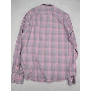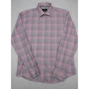 BUGATCHI Shaped Fit Men's Plaid Button Down Dress Shirt L Long Sleeve Pink Blue