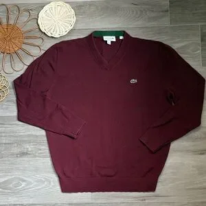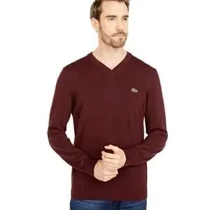 Lacoste Men's Burgundy V-Neck Sweater