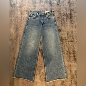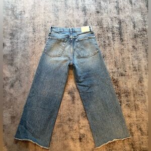 Stylish light blue jeans. Wide-leg design. Classic five-pocket style. Frayed hem for a trendy look. Reposhing exactly the same condition as purchased.
