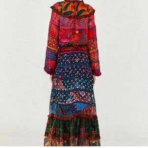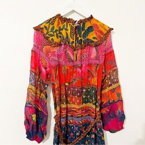 FARM RIO Mixed Prints Layered Maxi Dress Floral Leopard Tie Size Medium M *
