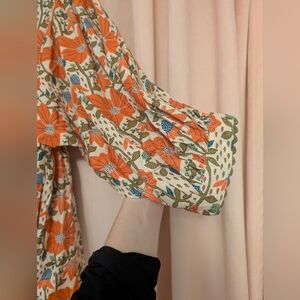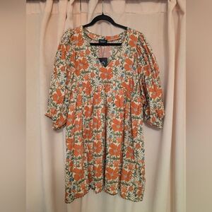 Gigio Poppy Lane Orange Floral V-Neck Dress New Medium Ric Rac Trim NWT