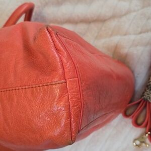 Tory Burch Orange Leather Tote Bag With Crossbody Strap