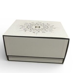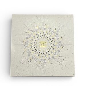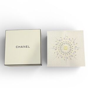 Authentic Chanel large keepsake / gift box featuring the elegant white camellia-inspired celestial design with gold CC logo.