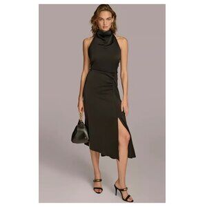 Donna Karan New York Women's Mock-Neck Ruched Asymmetrical Dress Size 8 NWT