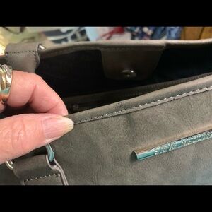 Chic gray tote with stylish cutout details. Perfect for everyday use. See last photo for details