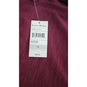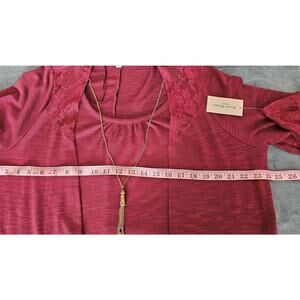 **Studio Works Women's Lace Detail Wine Glace Cardigan & Necklace Set - Size 1X** New with Tags MSRP: $54.00